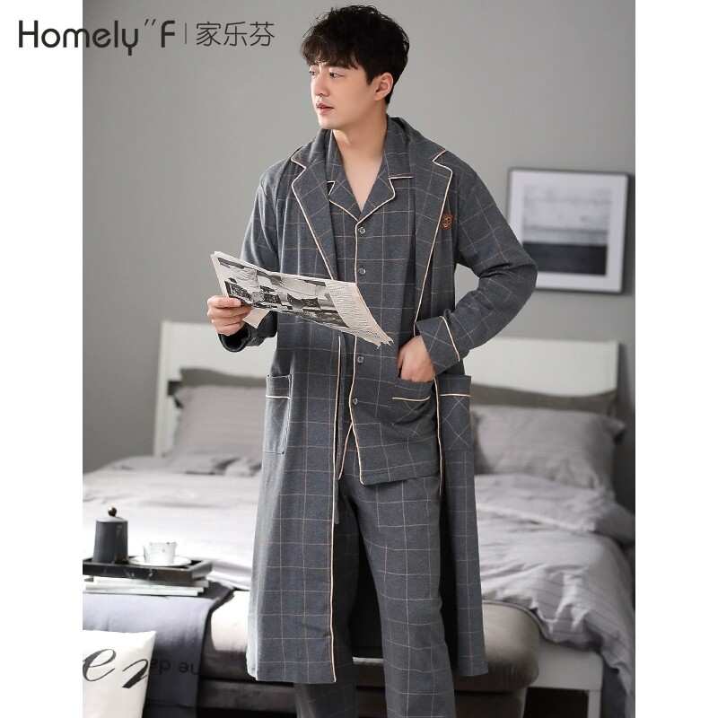 Sleeping Robes Men's Bathrobes Spring and Autumn Bathing Costumers Robes Pajamas Pyjamas Pyjamas SUMMER THIN Pure Cotton Changers are home to three suits
