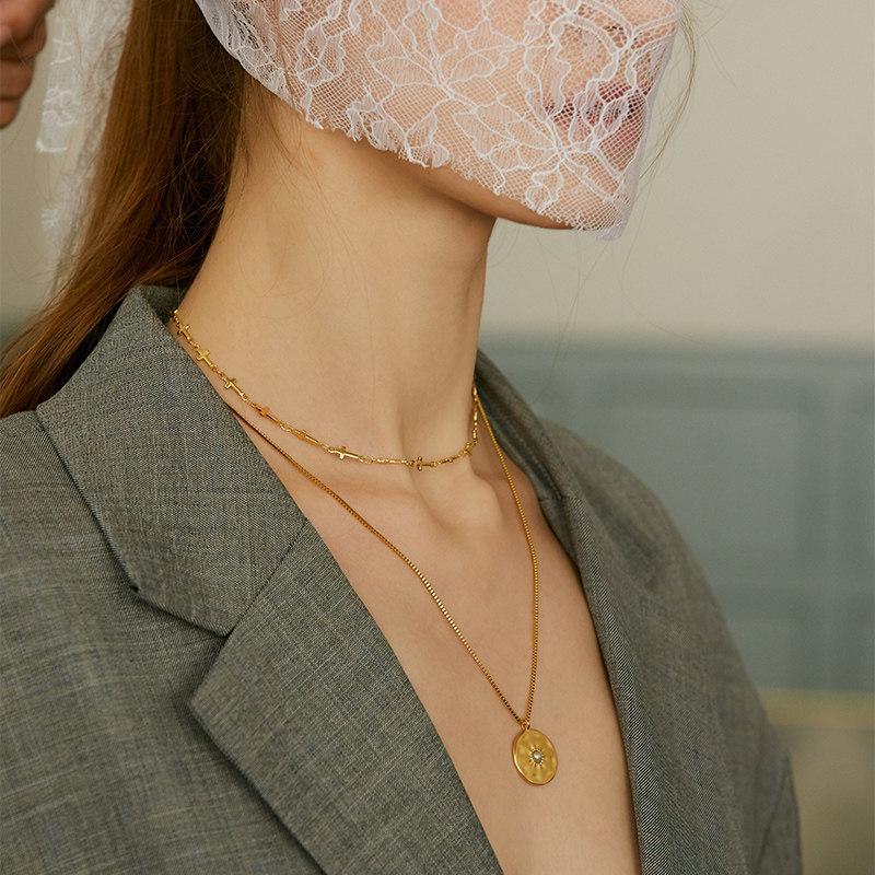 pn decoration necklace woman small crowd light lavish without fade titanium steel accessories cross laminated choker collarbone chain neck chain