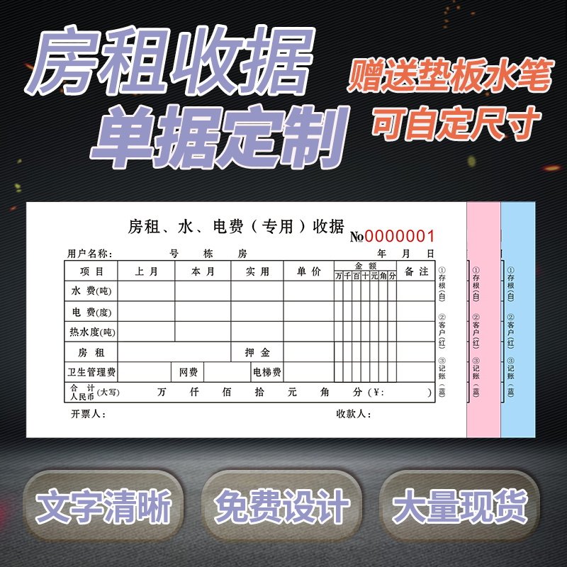 Customized special auction house lease contract (50 groups of 5 on page 100) house water and electricity receipt (100 page 50 group one piece 10) house water and electricity receipt (90 page 30 Group One