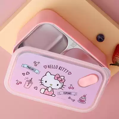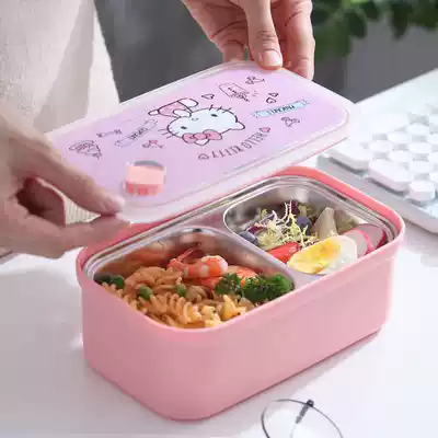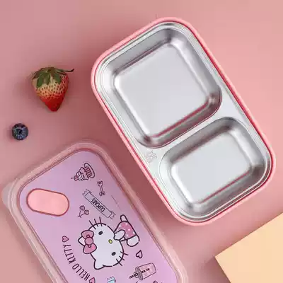 Cartoon students Korean version of portable two-compartment with lid anti-hot lunch box sealed separated fruit box children's lunch box