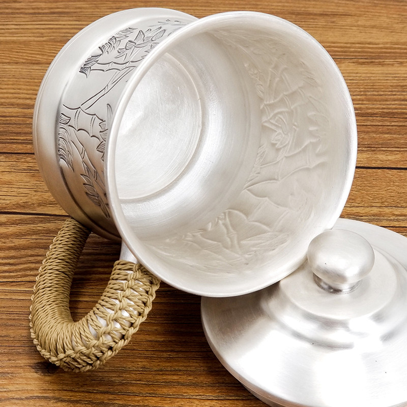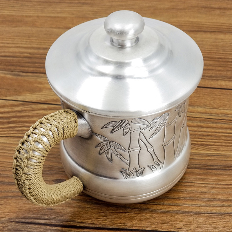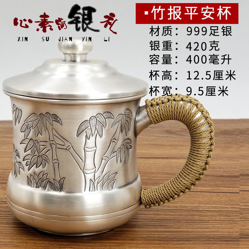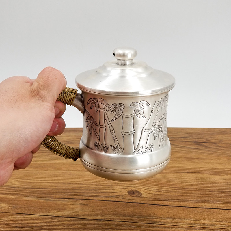 Foot silver cup 999 sterling silver water cup Handmade all-silver teacup Office cup with handle Snowflake silver tea tank tea set
