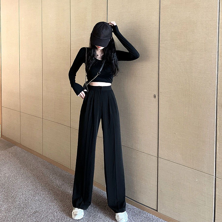 Broadlegged Pants Woman High Waist Pituality 2022 New Summer Black Western Dress Pants Straight Barrel Loose Lean Casual Tug Pants