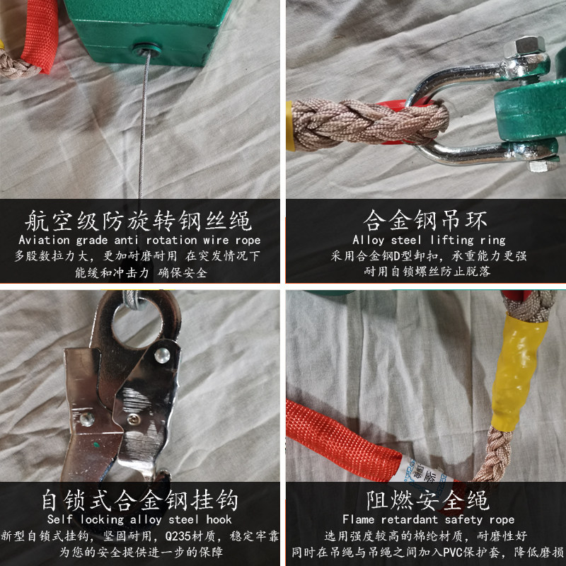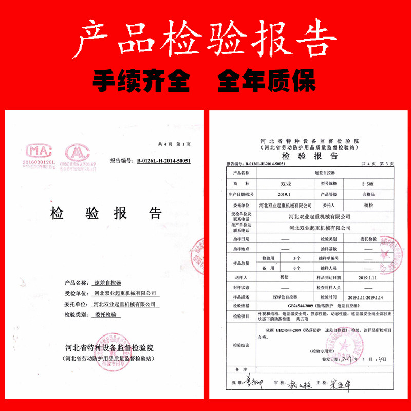 3 m small body 100 kg (double locking stop) 3 m Generally 150 kg (double locking) 5 m 150 kg (double locking) 7 m 150 kg (double locking stop) 10 m 150 kg