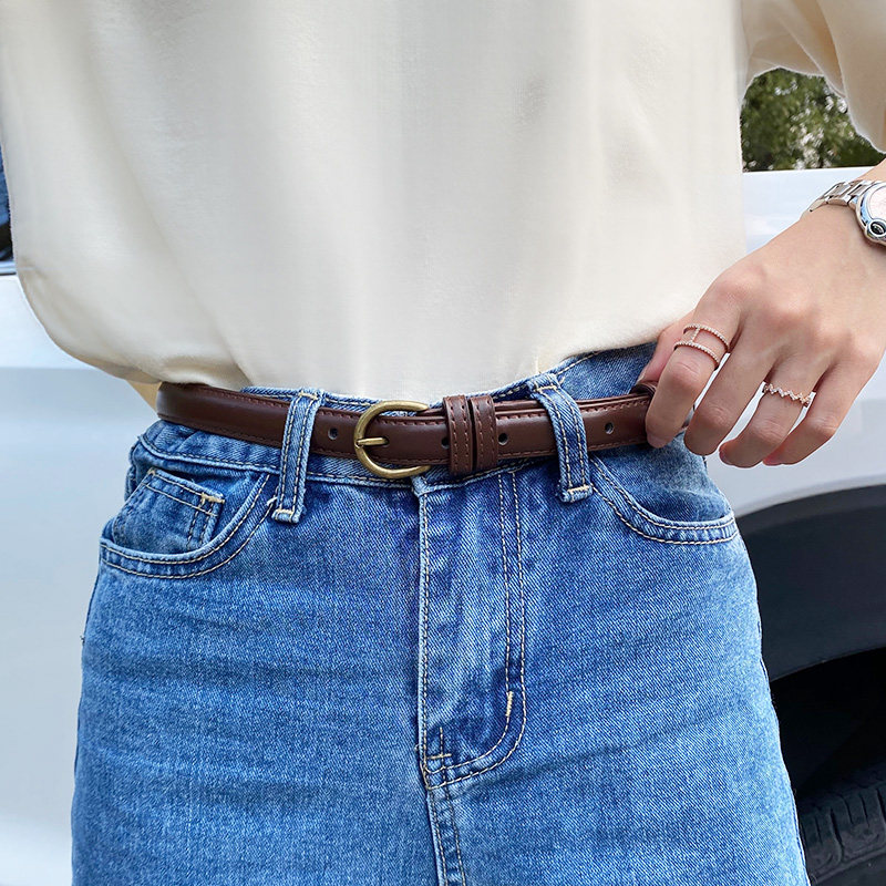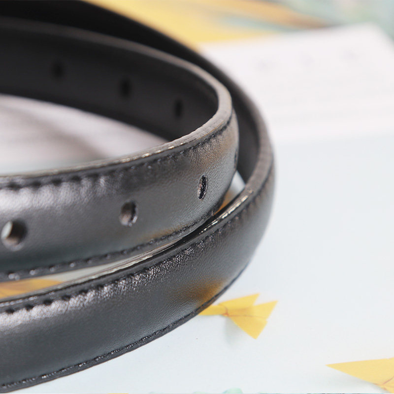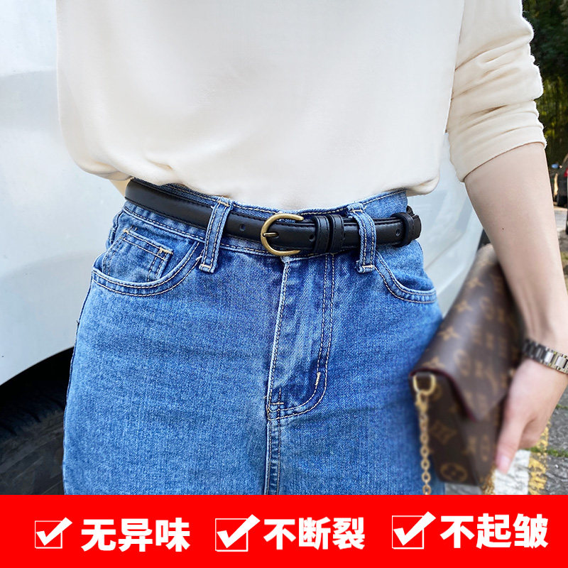 Net Red Small Fine Black Lady Leather Strap Men 100 Hitch Decoration Wide Jeans Belt Korean version pants with Ins Wind Fashion
