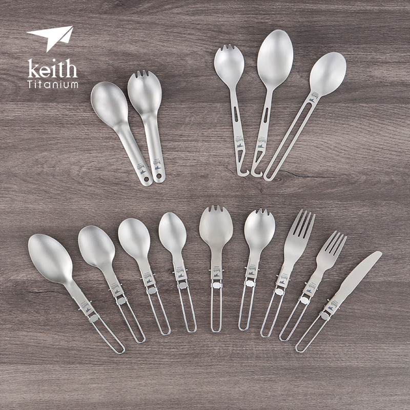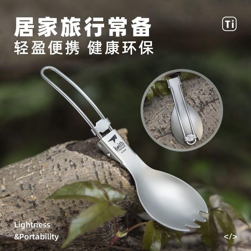 Keith Koxy portable outdoor tableware picnic camping folded spoon pure titanium fork spoon