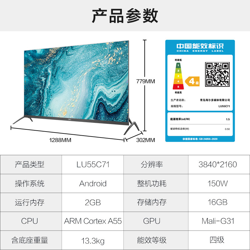 Haier Haier LU55C71 55-inch 4K high-definition smart flat liquid crystal Smart Full Screen TV