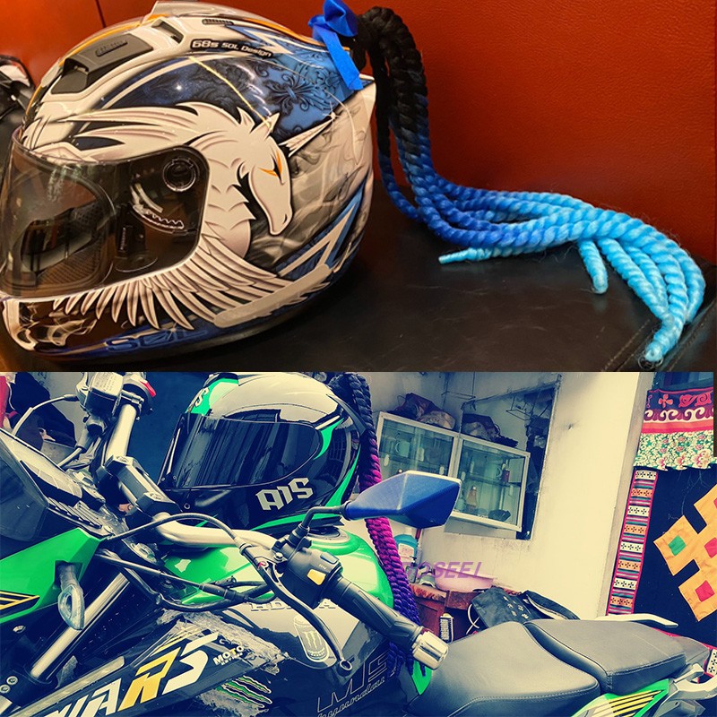 DOSEEI locomotive electric car helmet decoration small braids men and women locomotive ski helmet wig dirty braids personality