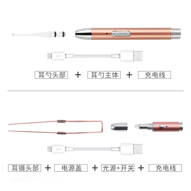Charging children adult glow digging ear spoony embolism and ear shit tweezer artifact
