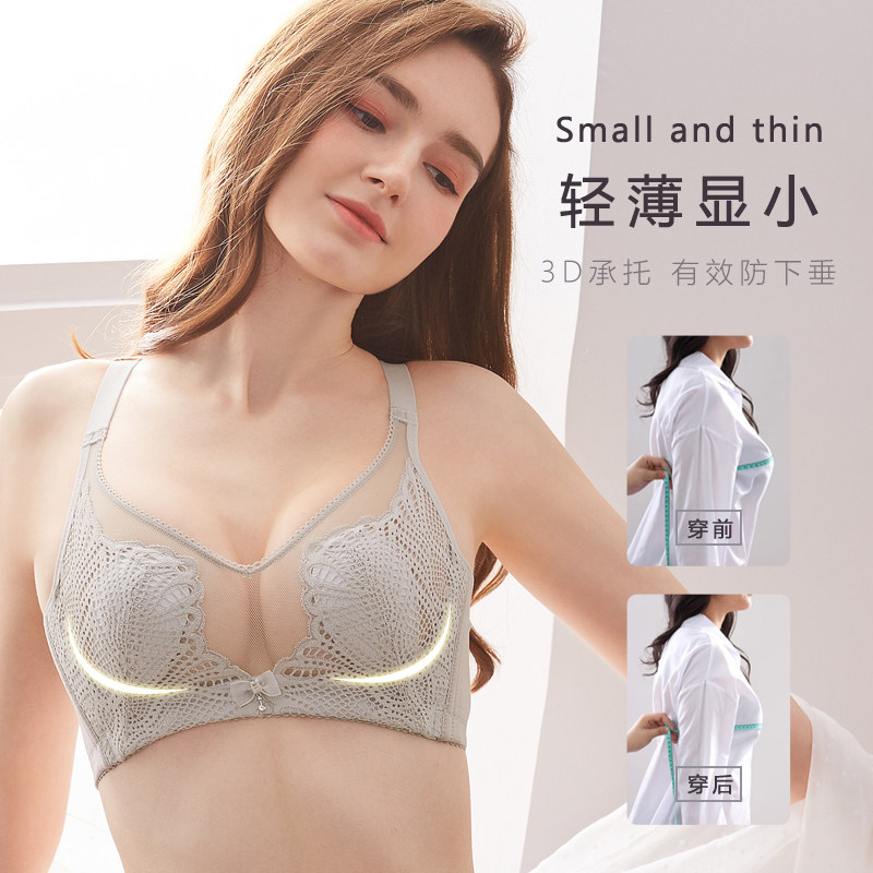 Large breasted small bra coalecking up to anti-sagging large size Size Underwear women No steel ring Fat mm Breast Slim slim Slim Bra