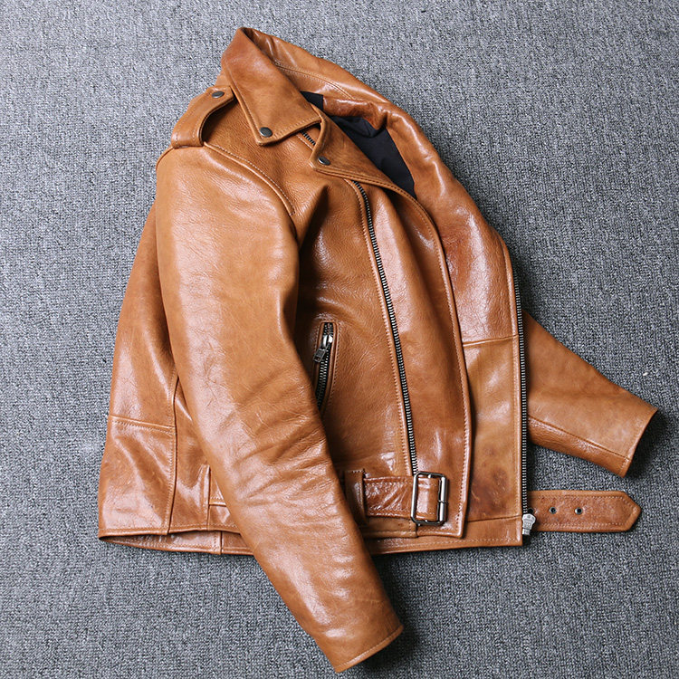 A rare good purchase 50 pieces of Italian crystal oil wax vegetable tanned heavy sheep leather motorcycle jacket men's leather coat
