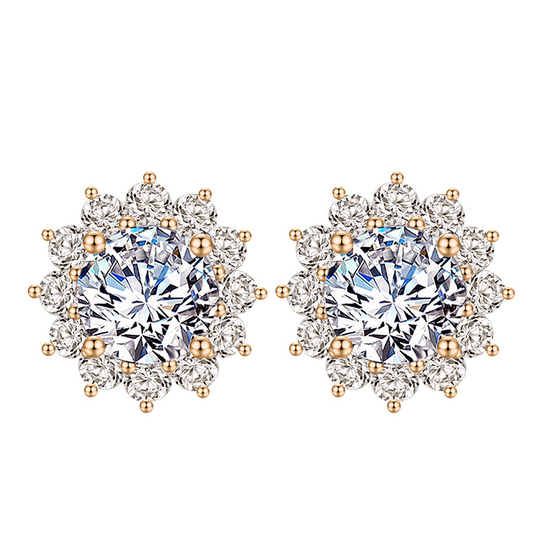 18K Rose Gold Sunflowers Mosanstone Diamond D Color New Platinum Four Paws Female Color Gold Earnter