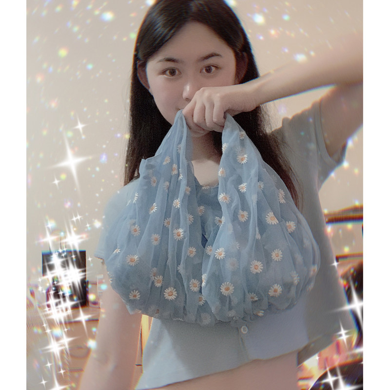 Small Red Book 2020 Spring Summer New Web Yarn Embroidery Little Daisy Cute Little Clear New Fairy Shopping Bag Handbag Handbag