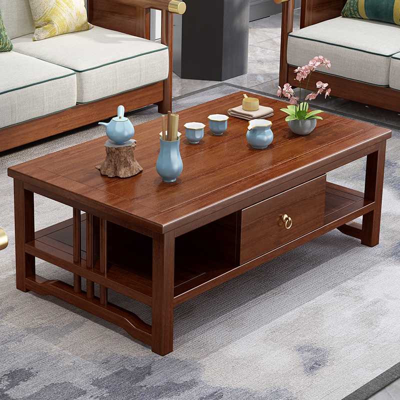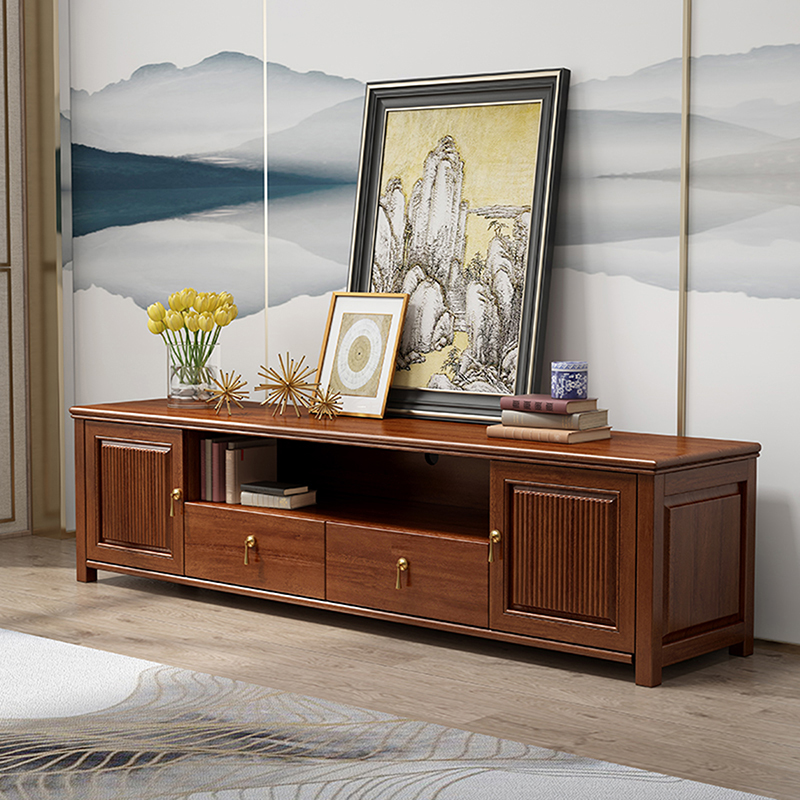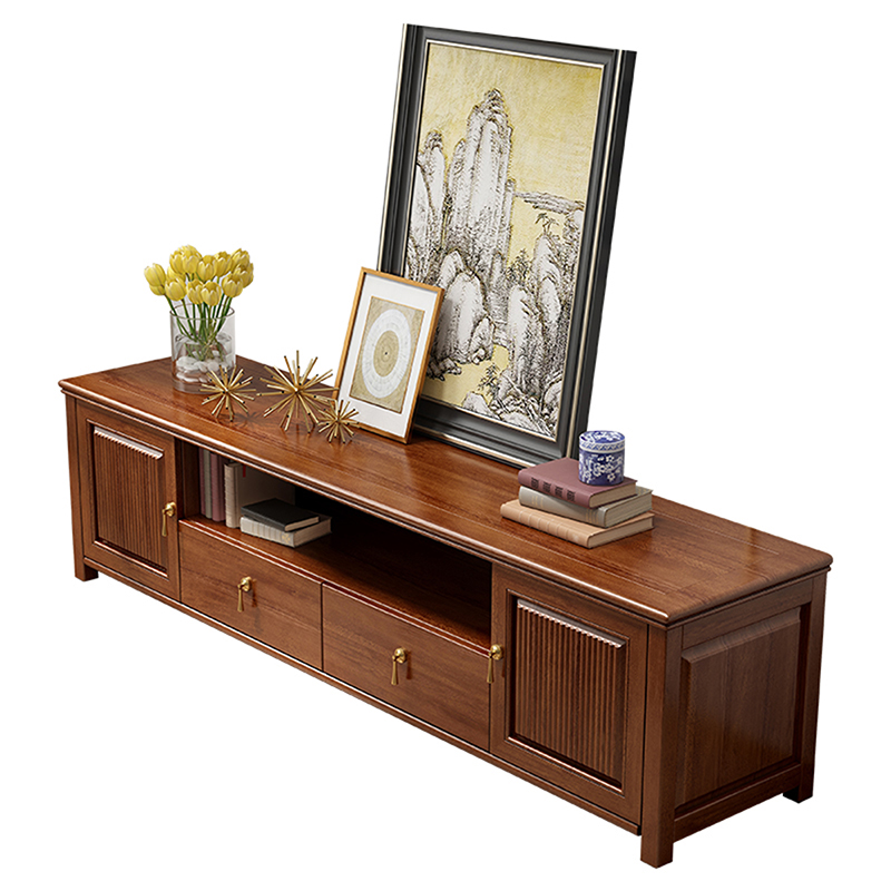 Gold silk sandalwood solid wood TV cabinet 2 m minimalist modern tea table group with Chinese-size family-style living room furniture