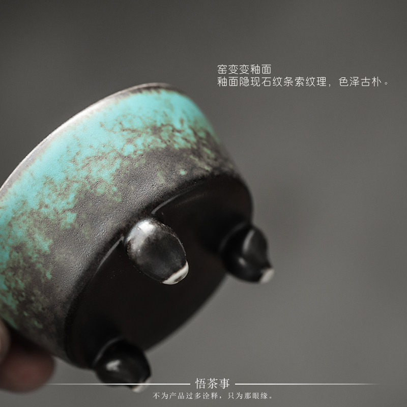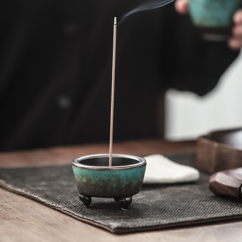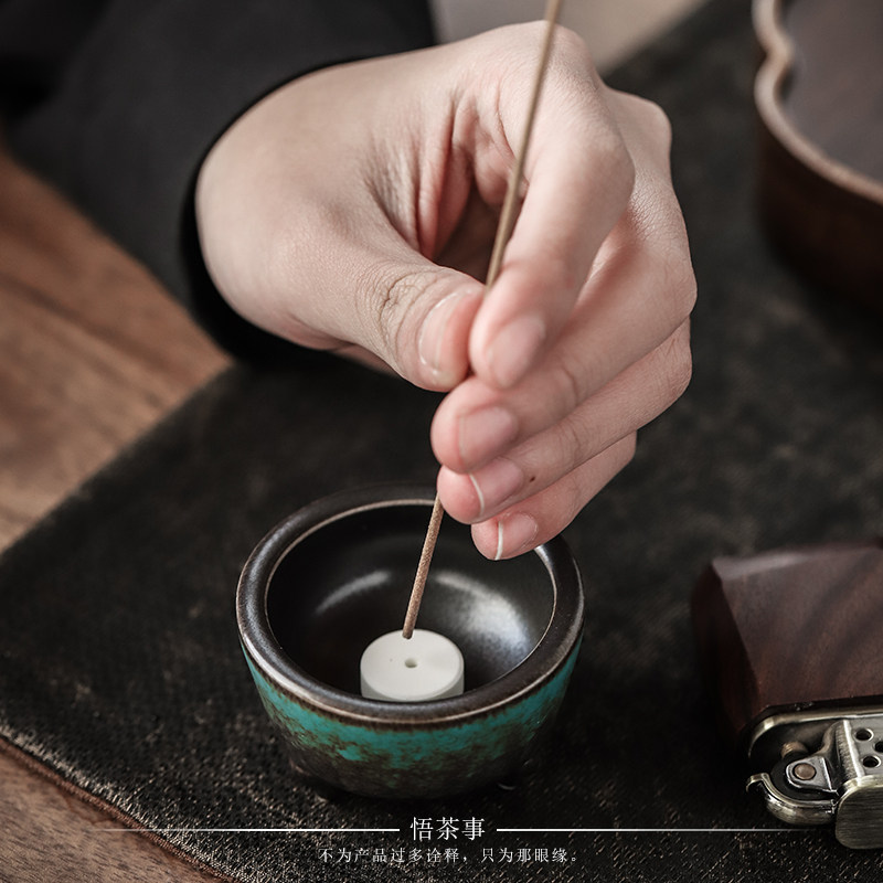 Enlightenment of tea things Ceramic Zen three-legged small incense burner Chinese retro simple line incense tower incense plate incense universal incense burner