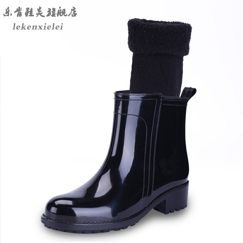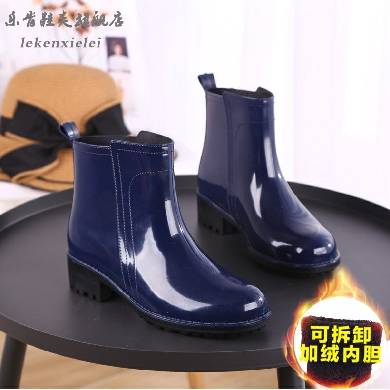 Rain Shoes Woman Short Cylinder South Korea Cute Adult Rubber Shoes Fashion Money Outside Wearing Water Shoes Rain Boots Waterproof Set Shoes Plus Suede Warm