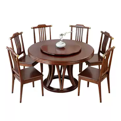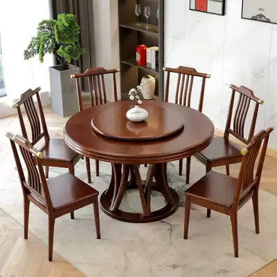 New Chinese style sandalwood solid wood dining table and chair combination modern light luxury style round table home dining table with turntable