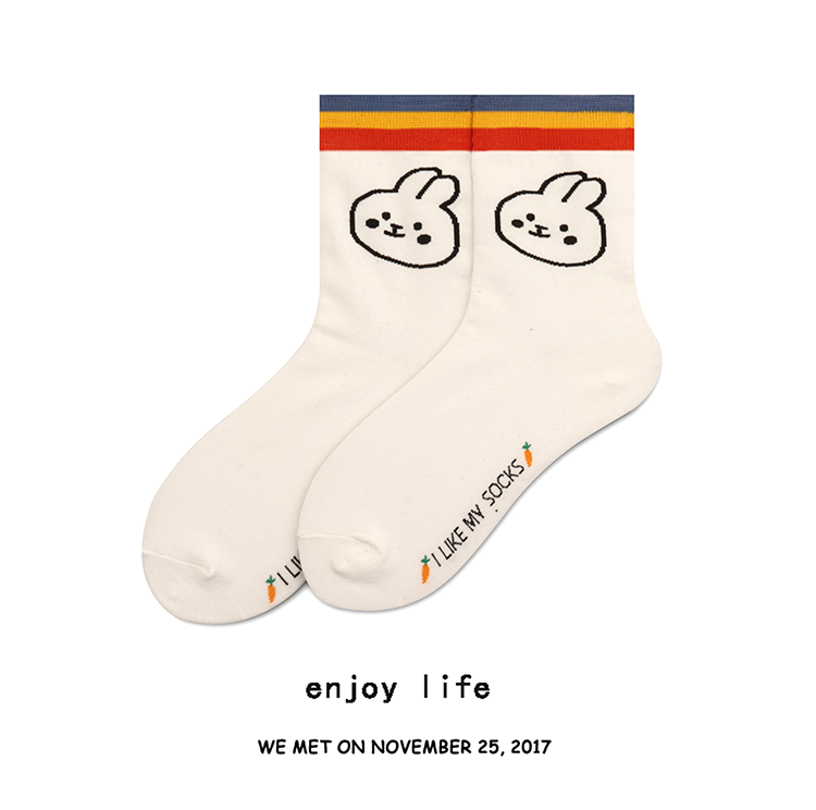 Socks for women cute Japanese stockings bunny student trendy all-match ins wind summer thin section pure cotton mid-tube socks for women