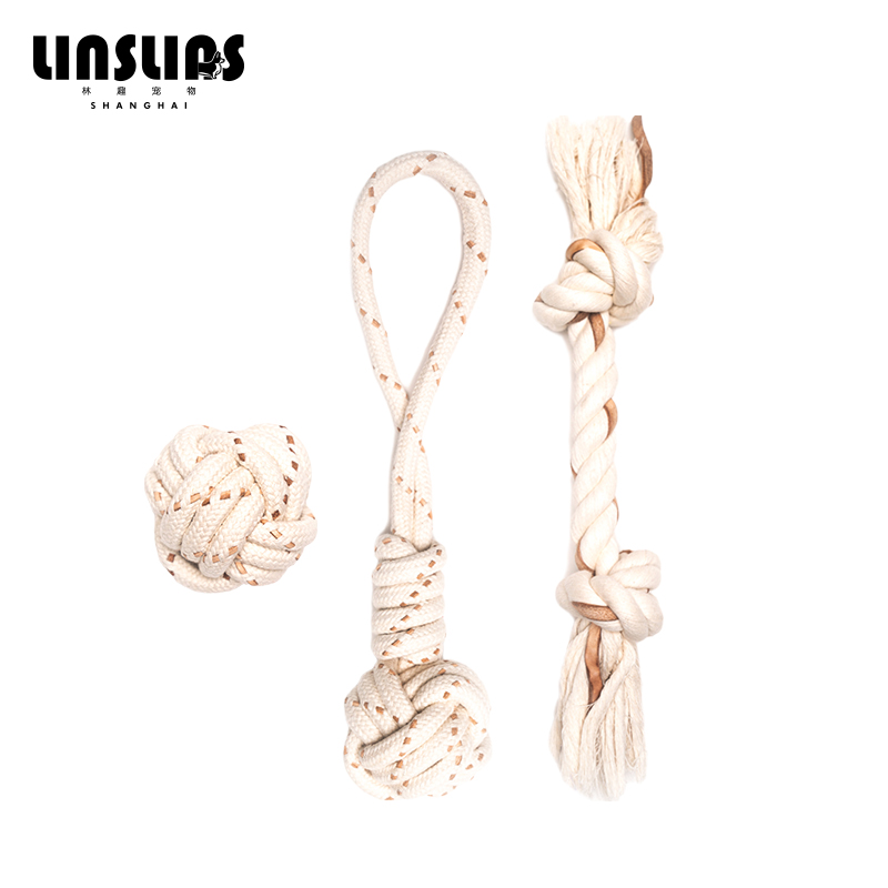 Lynfunny Pet Toy Dog Bite Rope Cow Leather Dog Grinding Tooth Stick Resistant To Bite Rope Knot Dog Toy Interactive Pooch Grindled Rope Knot
