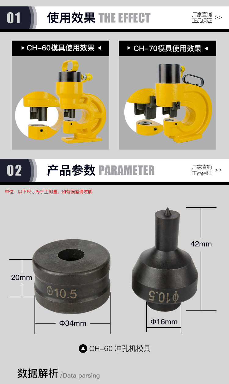 Punching machine die electric manual hydraulic CH-60 punching head CH-70 angle iron punching head copper aluminium row punching hole die