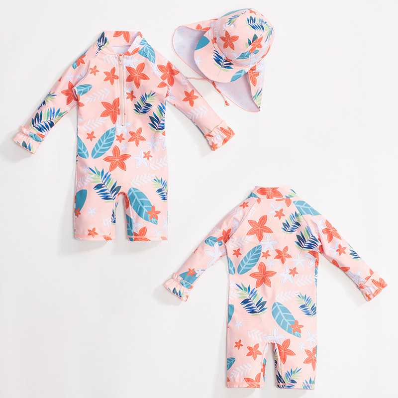 Girls Swimsuit 2021 New Kids Foreign Long Sleeve Swimsuit Pants Kids Baby Baby One-Piece Sunscreen Swimsuit