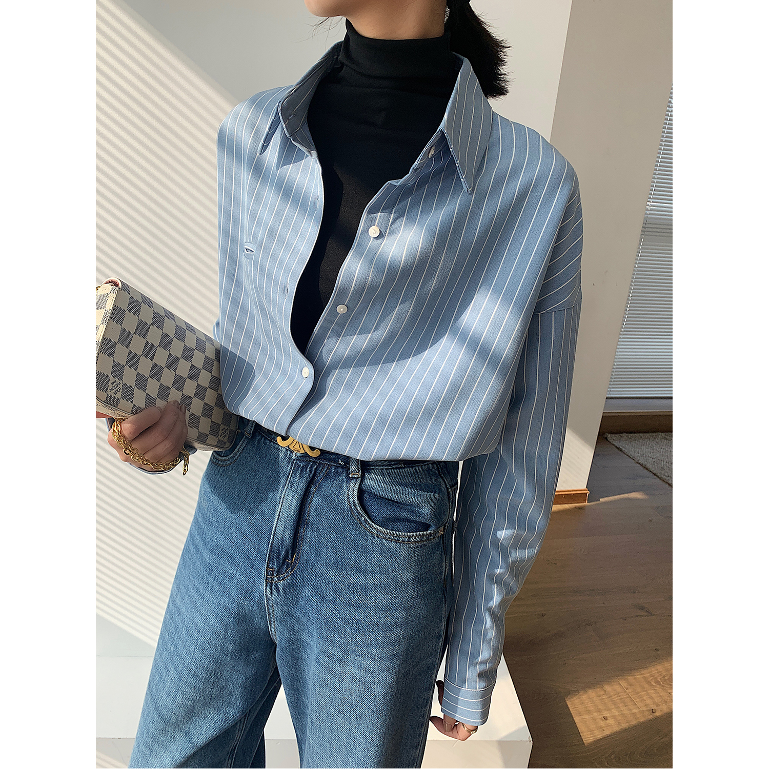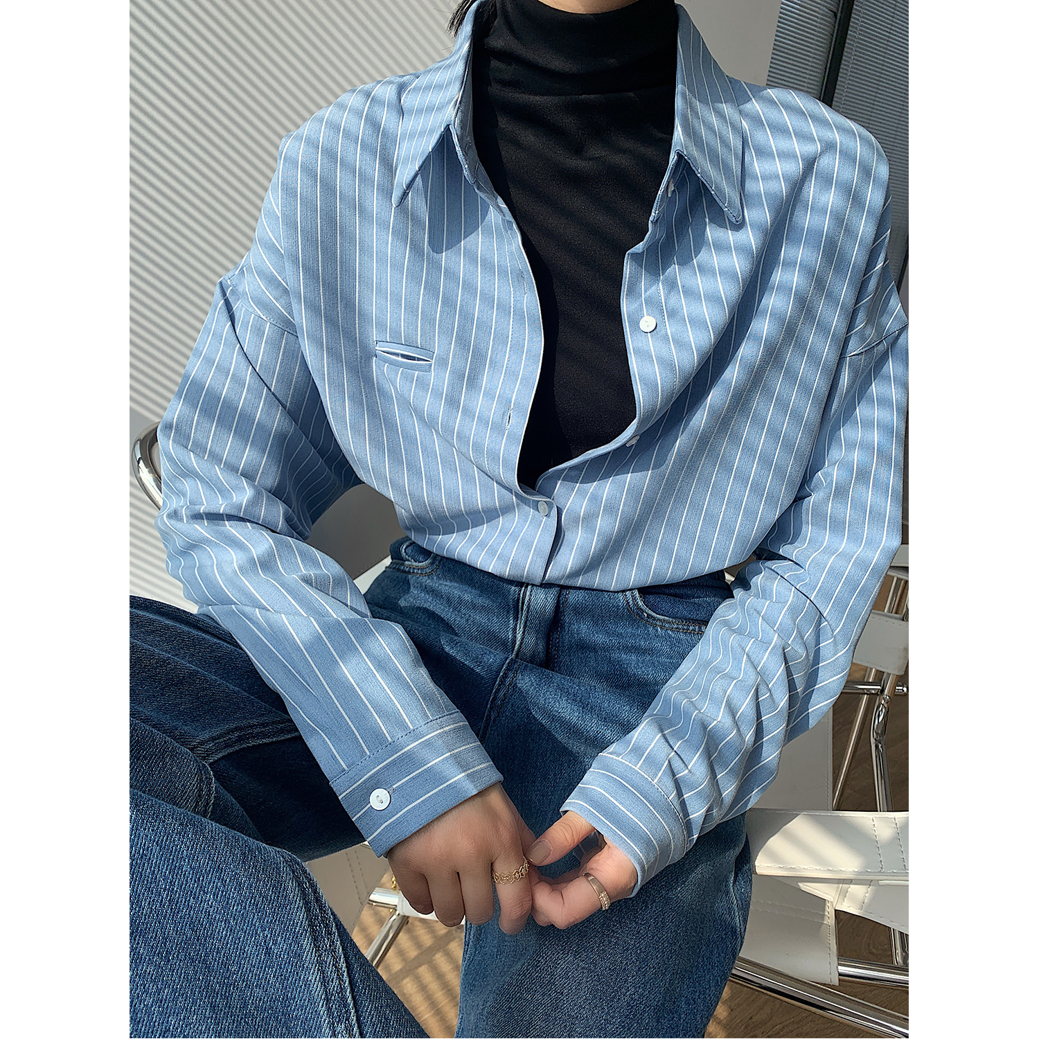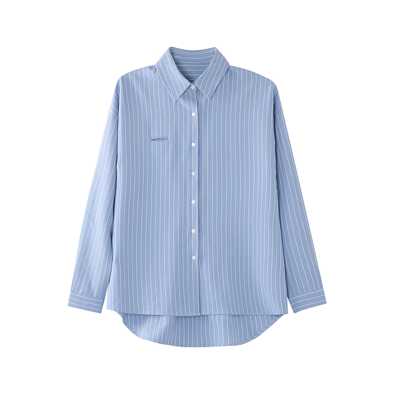 Lazy Harbor Wind Blouse Oversize Cardigan Design Sense Small Pocket Loose Long Sleeve Vintage Blue White Striped Shirt