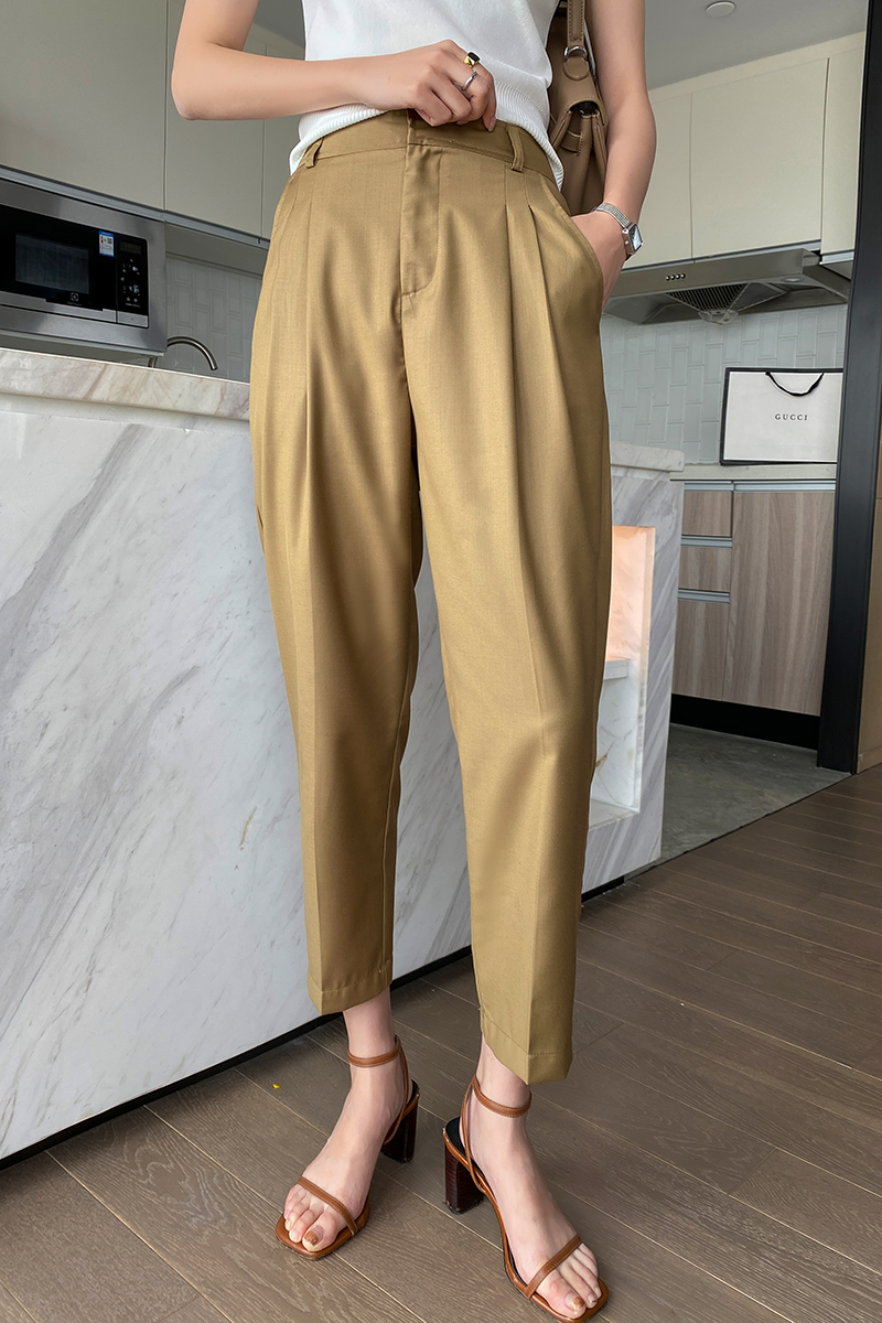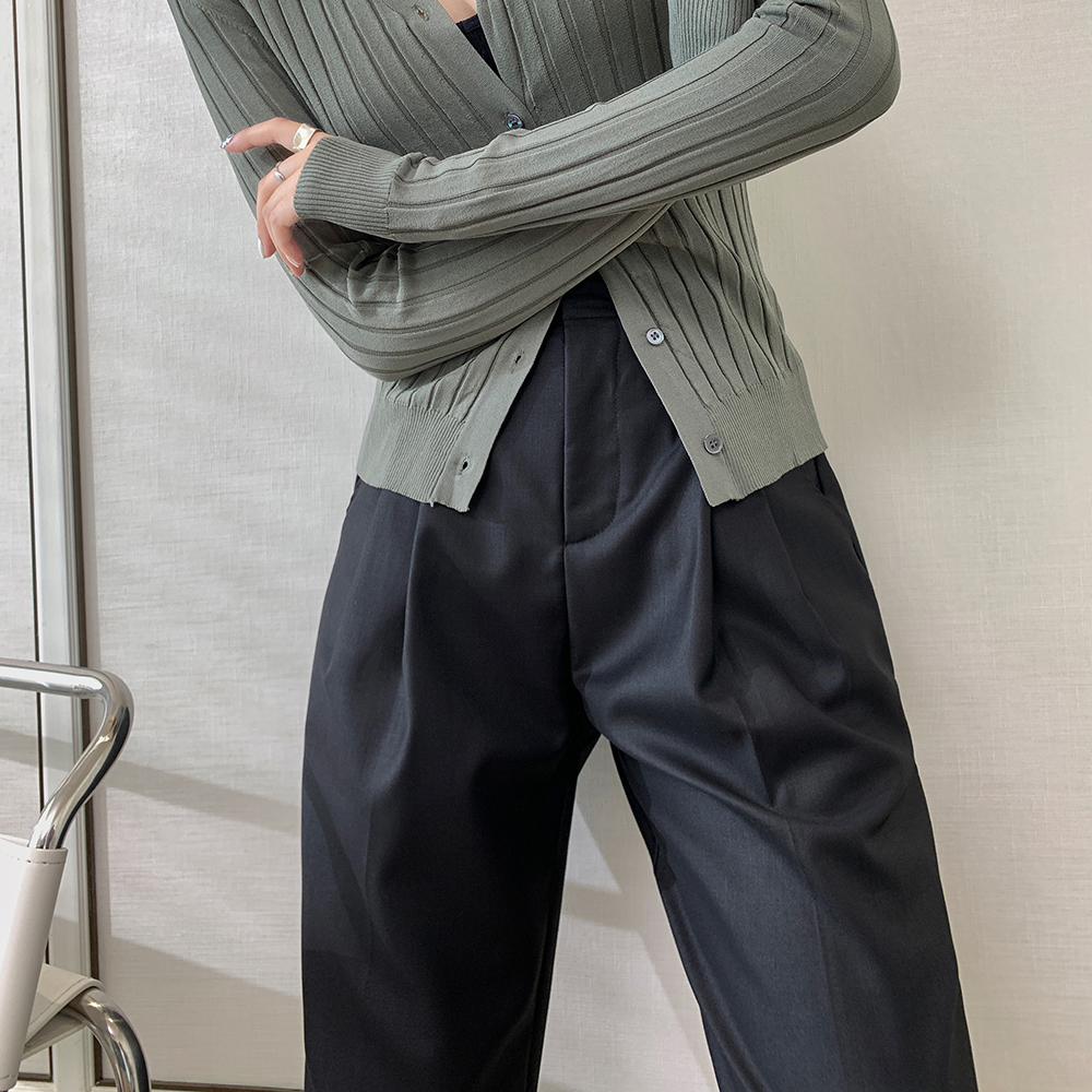 2022 spring summer thin section Mist Surface Glossy Suit Smoke suit Pants Woman High Waist Loose slim 100 lap 90% casual pants