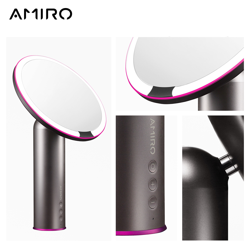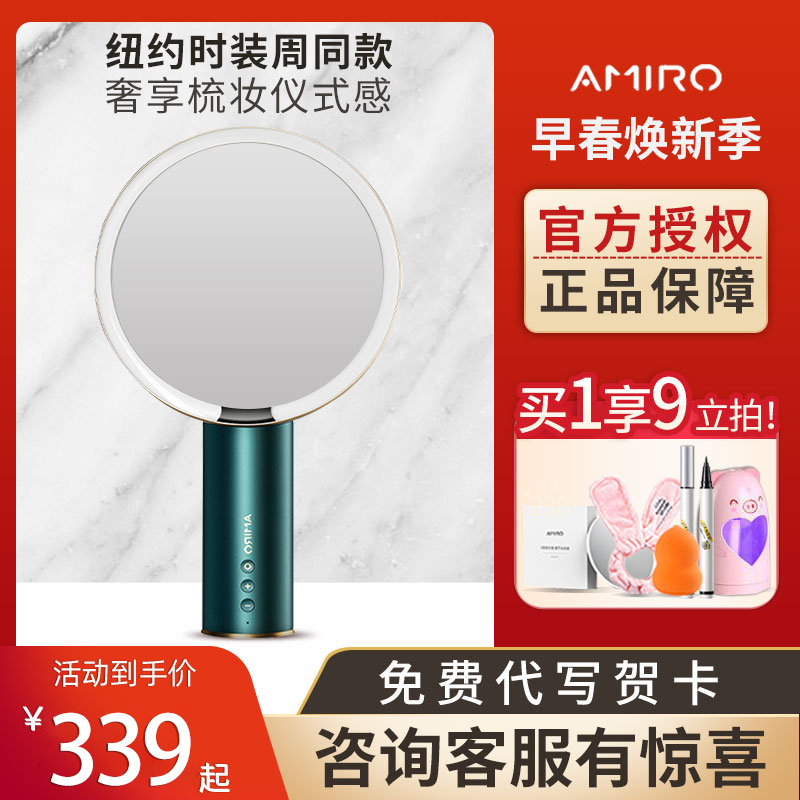 AMIRO looking for light makeup mirror led desktop daylight mirror with light dressing desktop retro O2 high-definition beauty makeup small black mirror