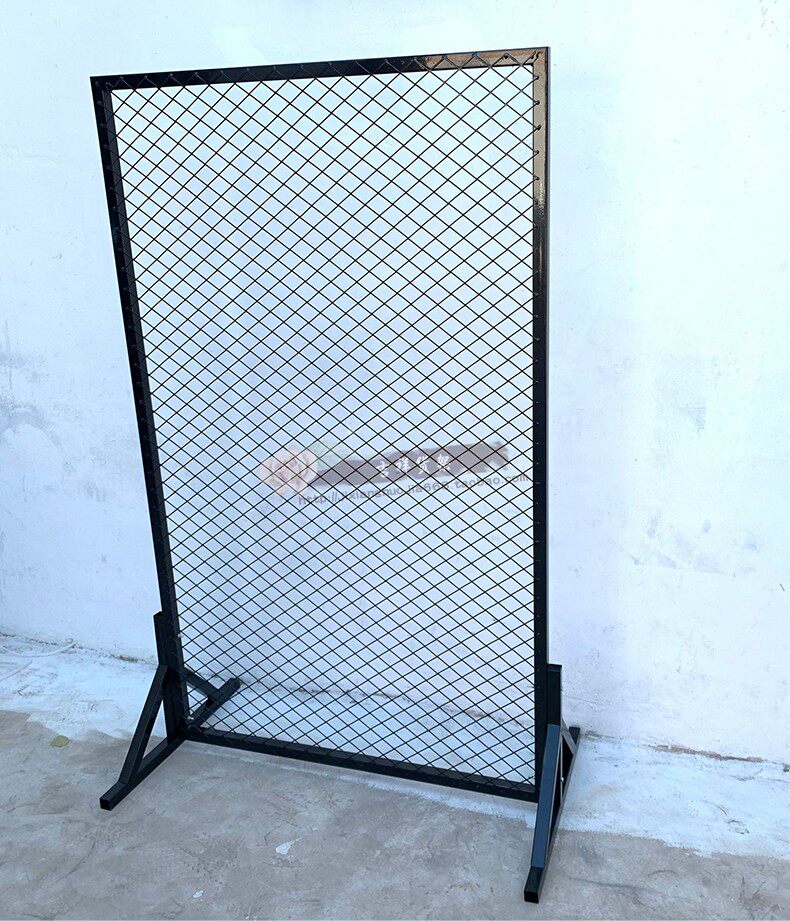 Vertical floor-to-ceiling push-pull diamond-shaped wire mesh grid frame exhibition kindergarten works display stand partition screen