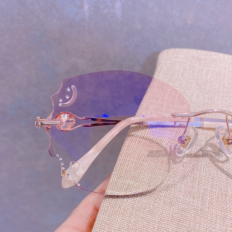 Colour changing glasses myopia women with degrees can be matched with large face display slim without frame diamond cut border fog anti-blue optical network red light