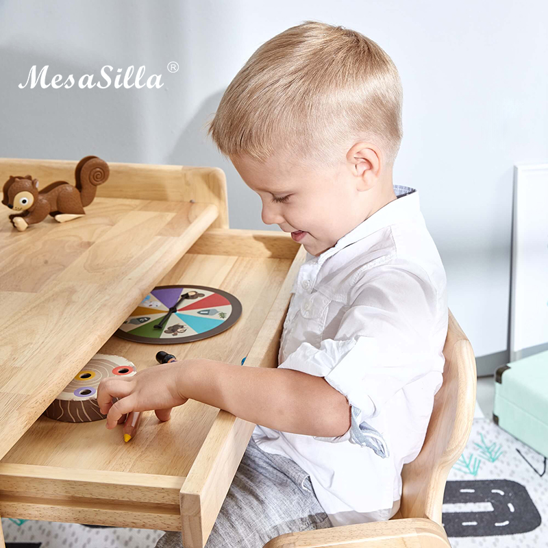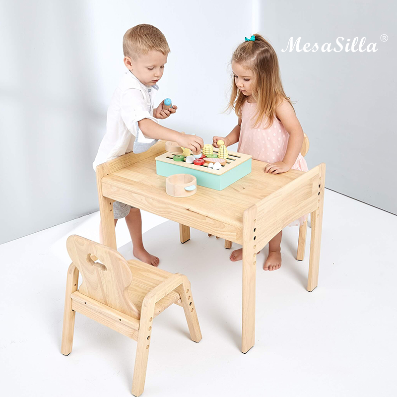 MesaSilla Children's baby solid wood kindergarten toy eating can lift writing learning table table and chair set