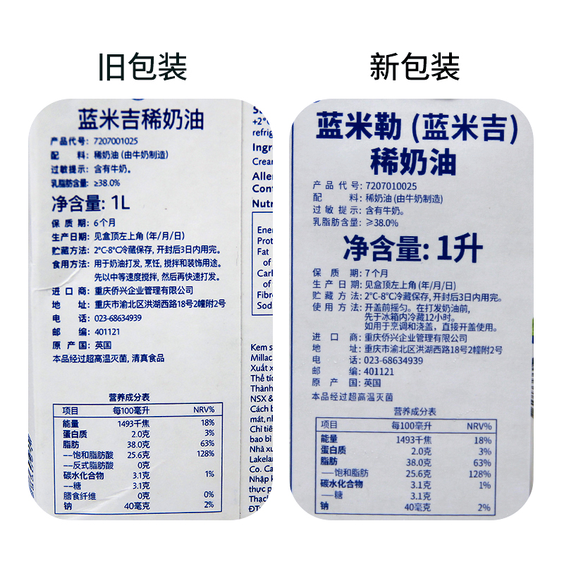 Blue Windmill Light Cream 1L Imported Animal Blue Miji Cream Home Baking Cake Decorated Egg Tart Raw Material