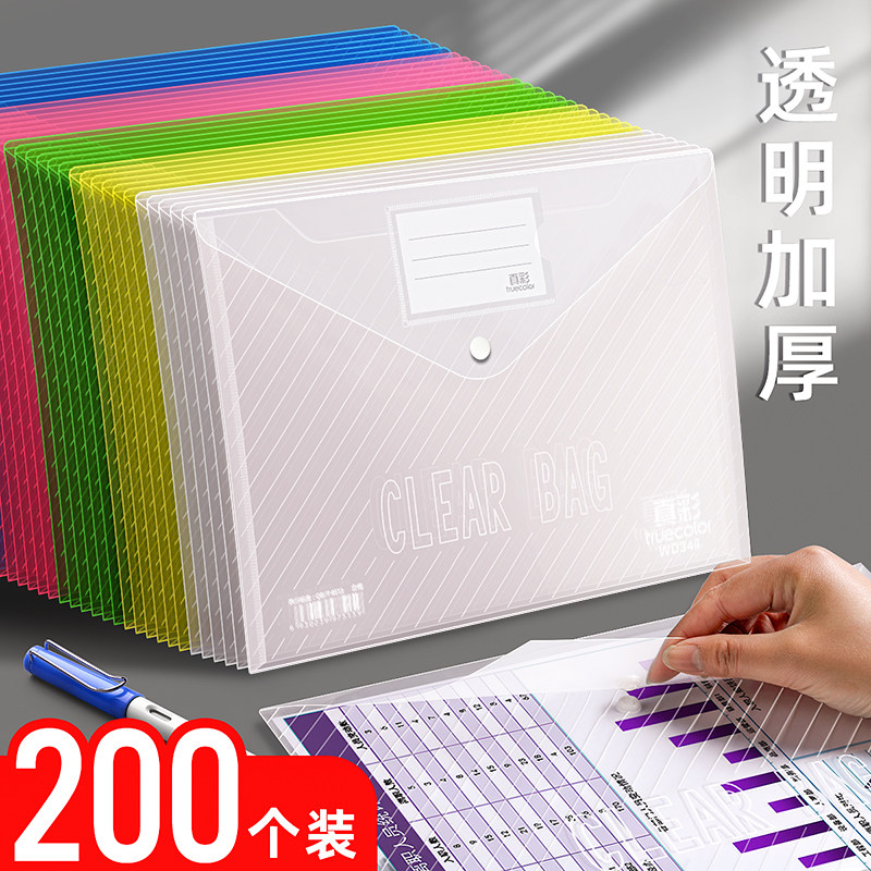 Thickened 100 A4 transparent document bags press buckle large capacity plastic transparent information bag bill storage bag office supplies file bag folder stationery box test paper stationery bag information book