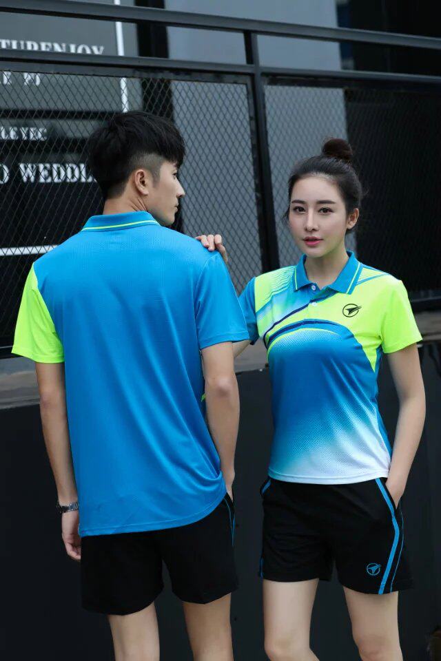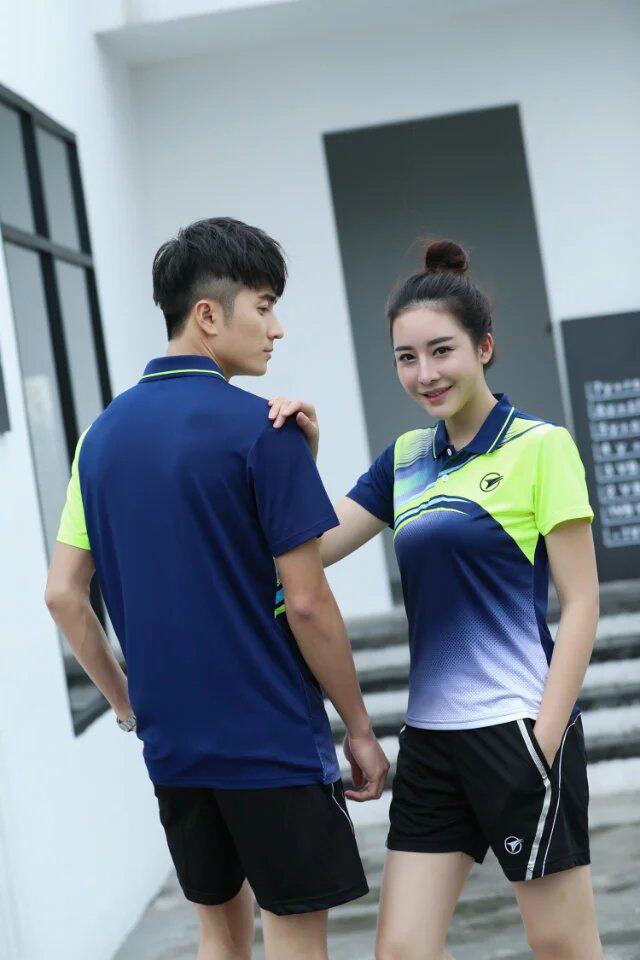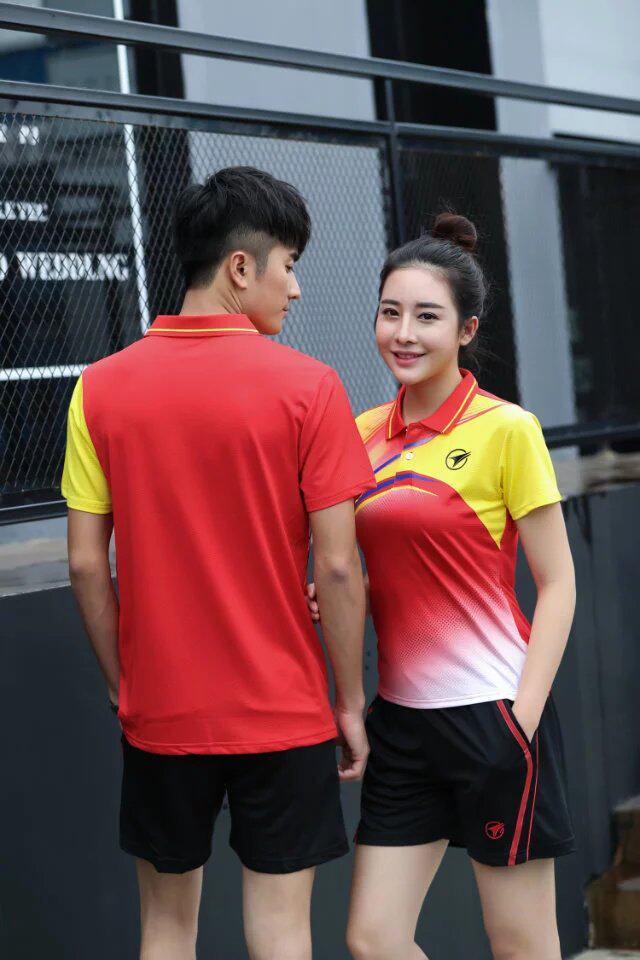 Yuyufan high-grade mesh fabric badminton suit Men's and women's training competition lapel T-shirt shorts Bingbing ball suit