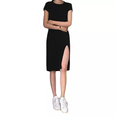 2021 new summer new Hepburn style retro sexy split long dress slim black dress