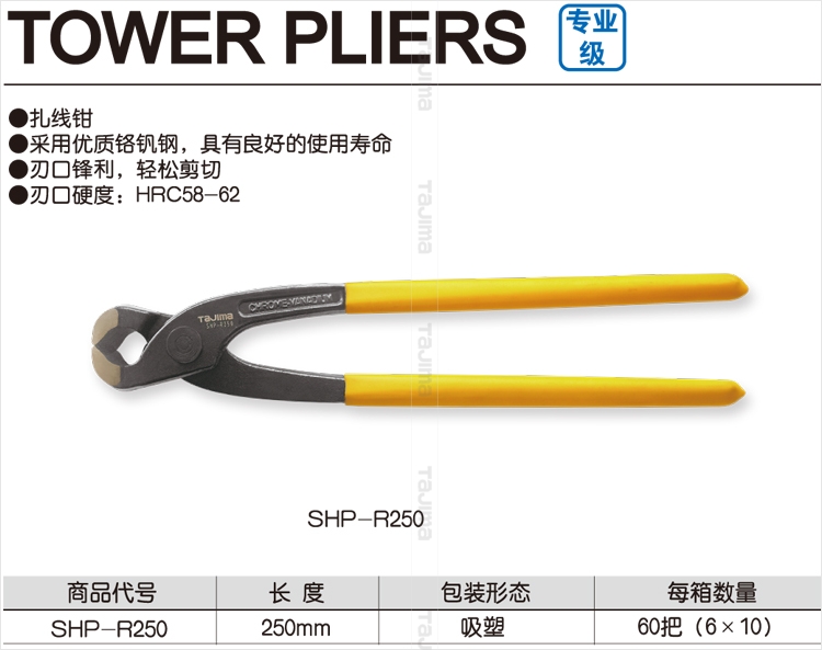TAJIMA Japan Tianko Tool 10 inch wire clamp High quality chromium vanadium steel stained plastic handle SHP-R250