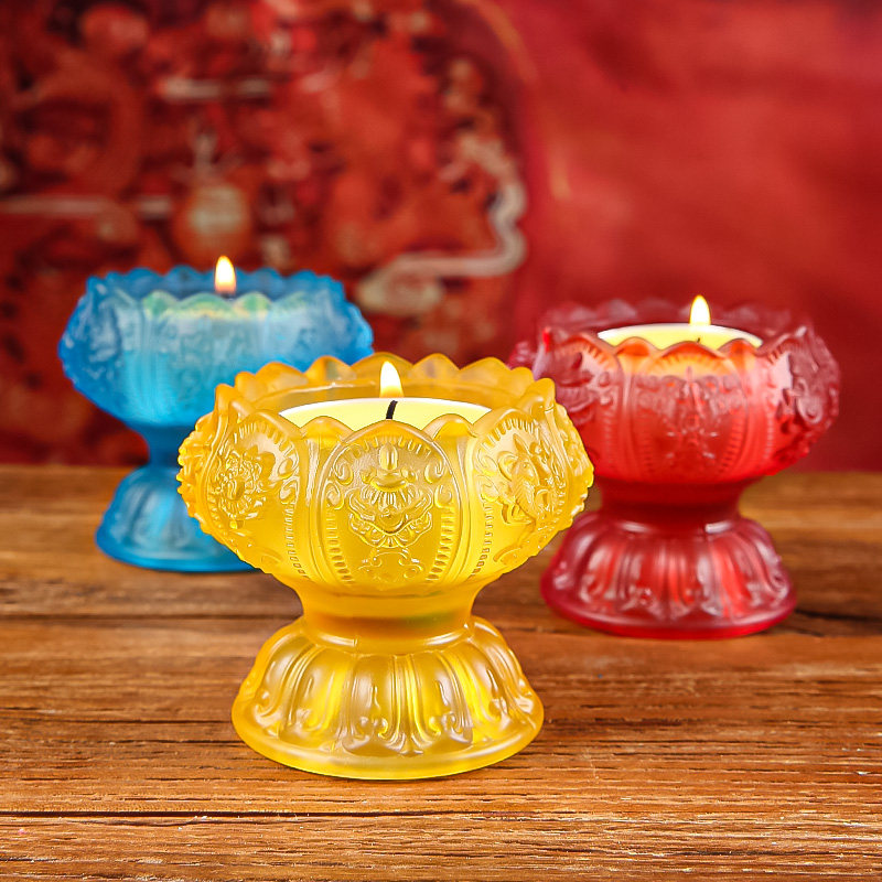 Seven colorful lotus crisp oil lamp lamp holder Eight auspicious home dedicated to glazed wax candle holder ghee lamp with long Ming lamp seat-Taobao
