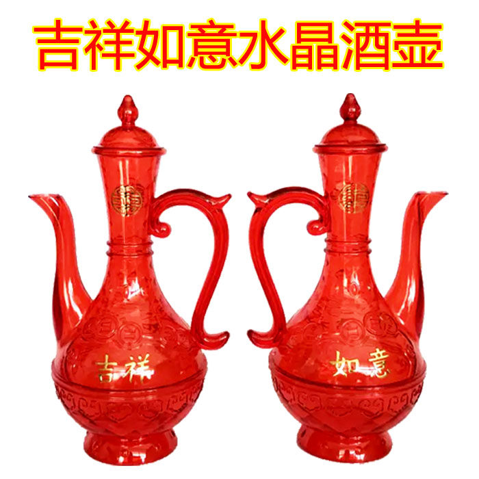 A set (1 red wine jug and 6 goblets) 6 lucky goblets, 6 crystal flowers blooming rich and noble goblets, 1 red wine jug, 1 crystal auspicious Ruyi jug, 1 crystal jug and 6 blessings Character height