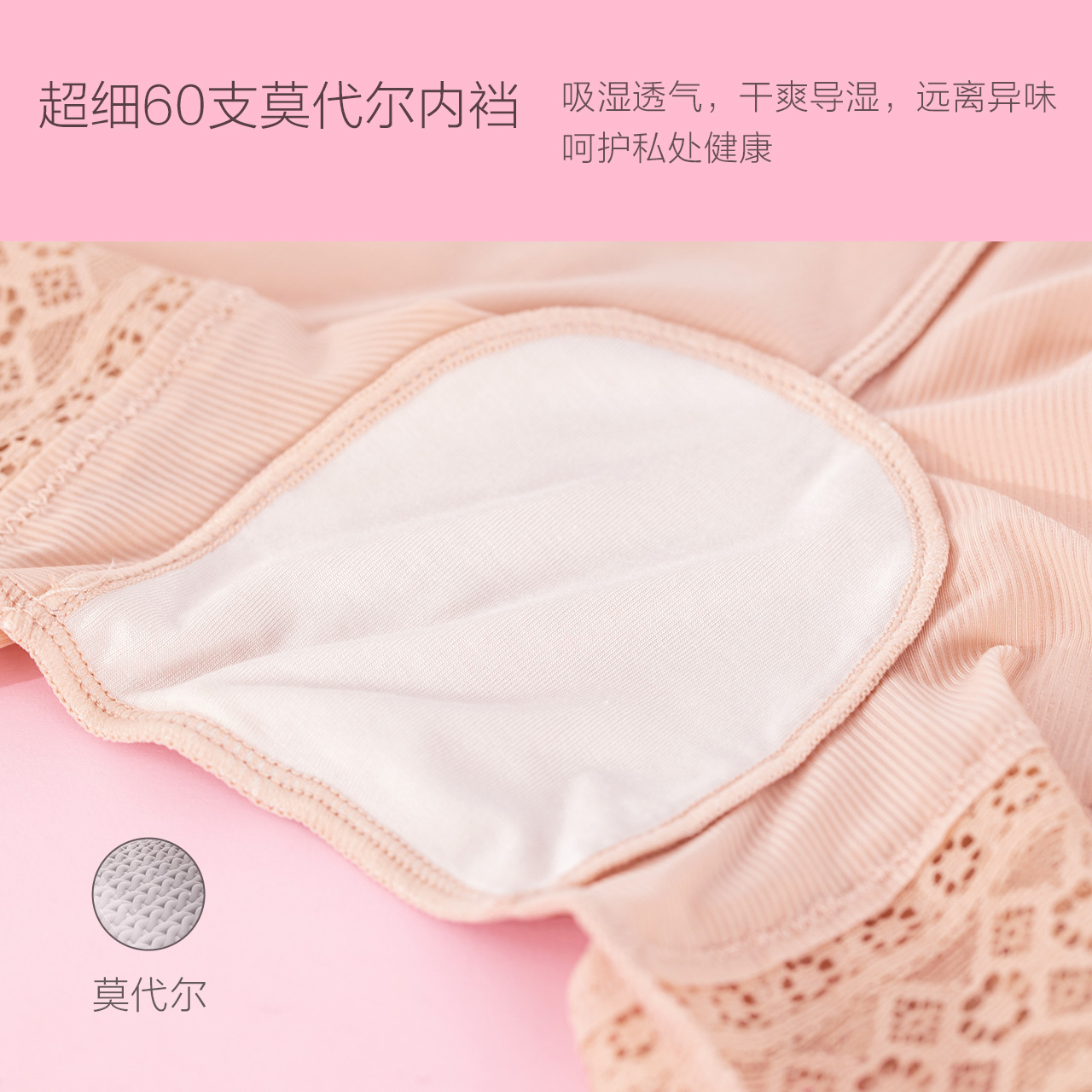 Anti-light flesh color skin tone no trace Modal base flat angle lace women's safety pants four corners underwear summer thin section