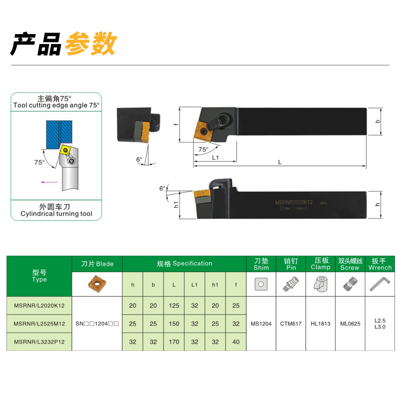 Outer circle turning tool bar CNC turning tool 75 degree MSRNR2020K12 2525M12 3232P12 square blade