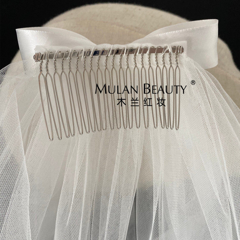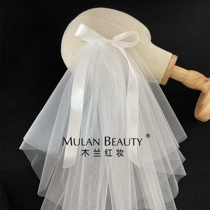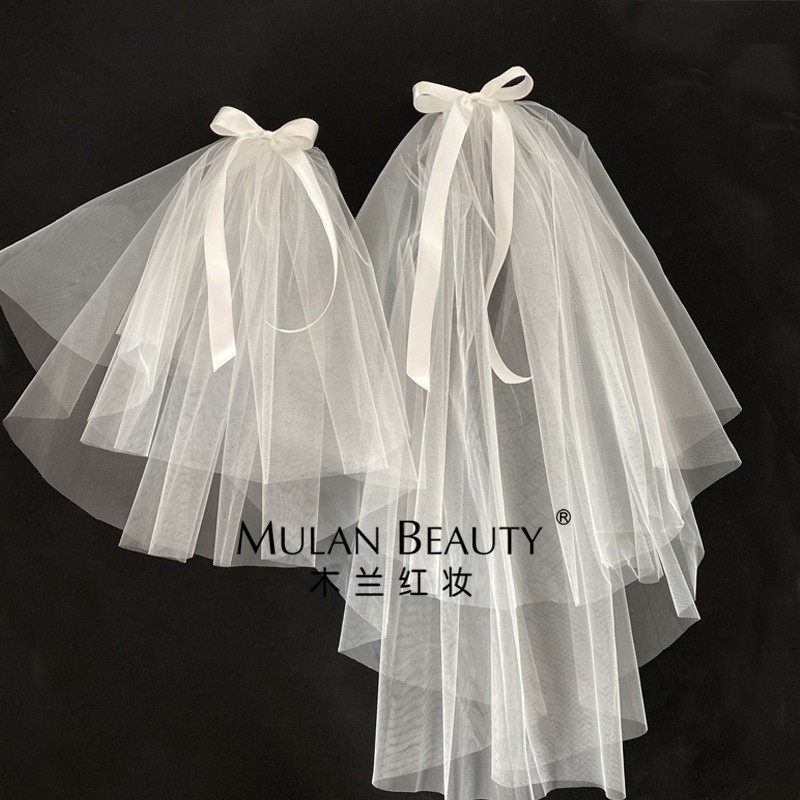 Baby veil mother-daughter parent-child bow photo children's headdress short seahorse headdress forest series of net red retro
