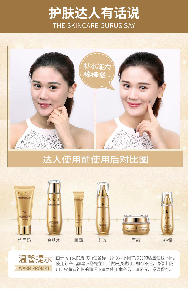 A branch Spring flagship store snail extract kit Six-piece moisturizing moisturizing skin care product kit Cosmetics