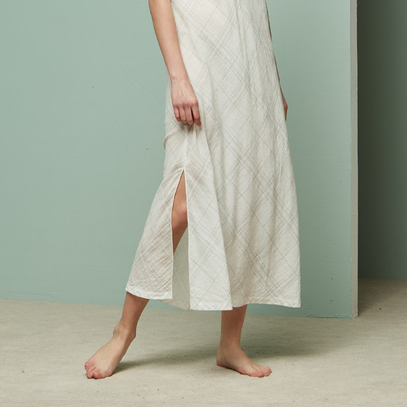 Spring Summer Pajamas Lady Harness Dew Back Sexy Plaid Pendant With Skirt Pyjamas Dress With Long Skirt