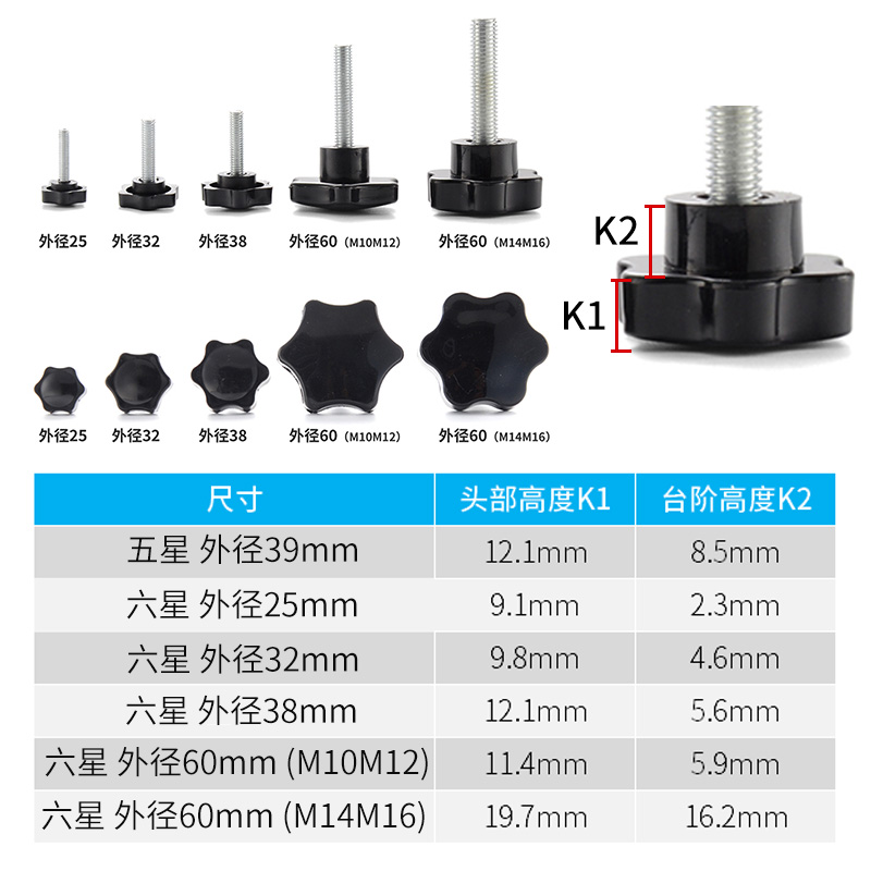 Plum Handle Screw Six-star Hand Wringing With Handle Screw Plastic Plum Handle Adjustment Bolt head M5M6M8L-Taobao