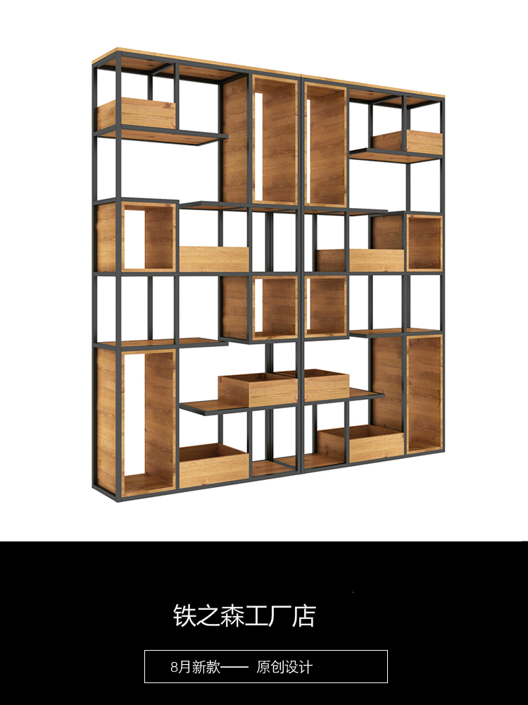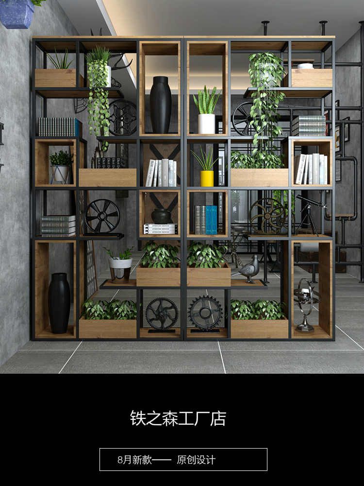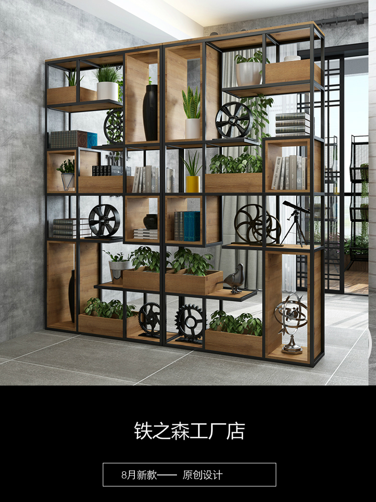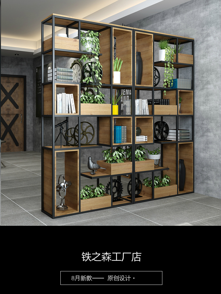 Iron wood partition office living room dining room industrial wind screen flower stand display stand porch company Shelf