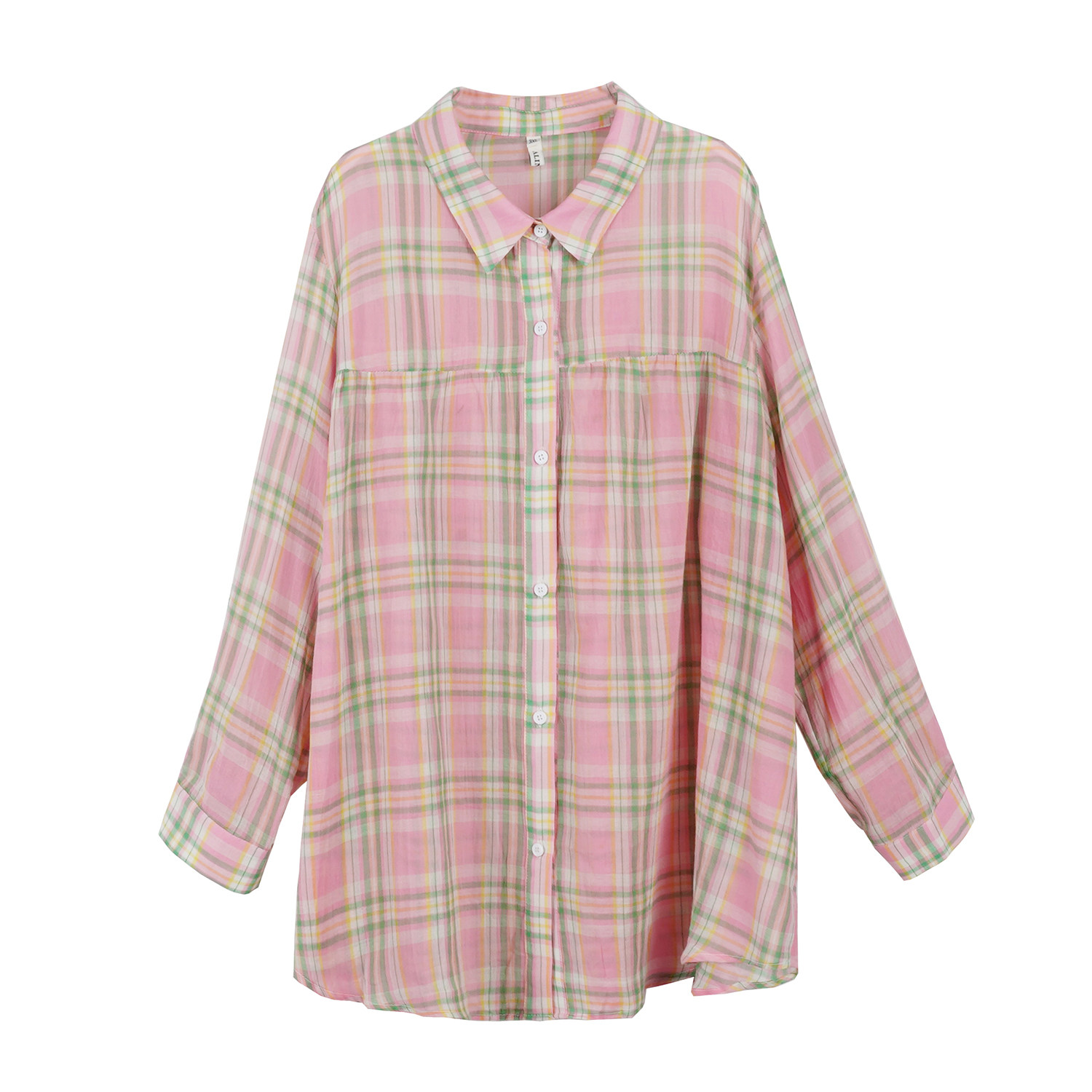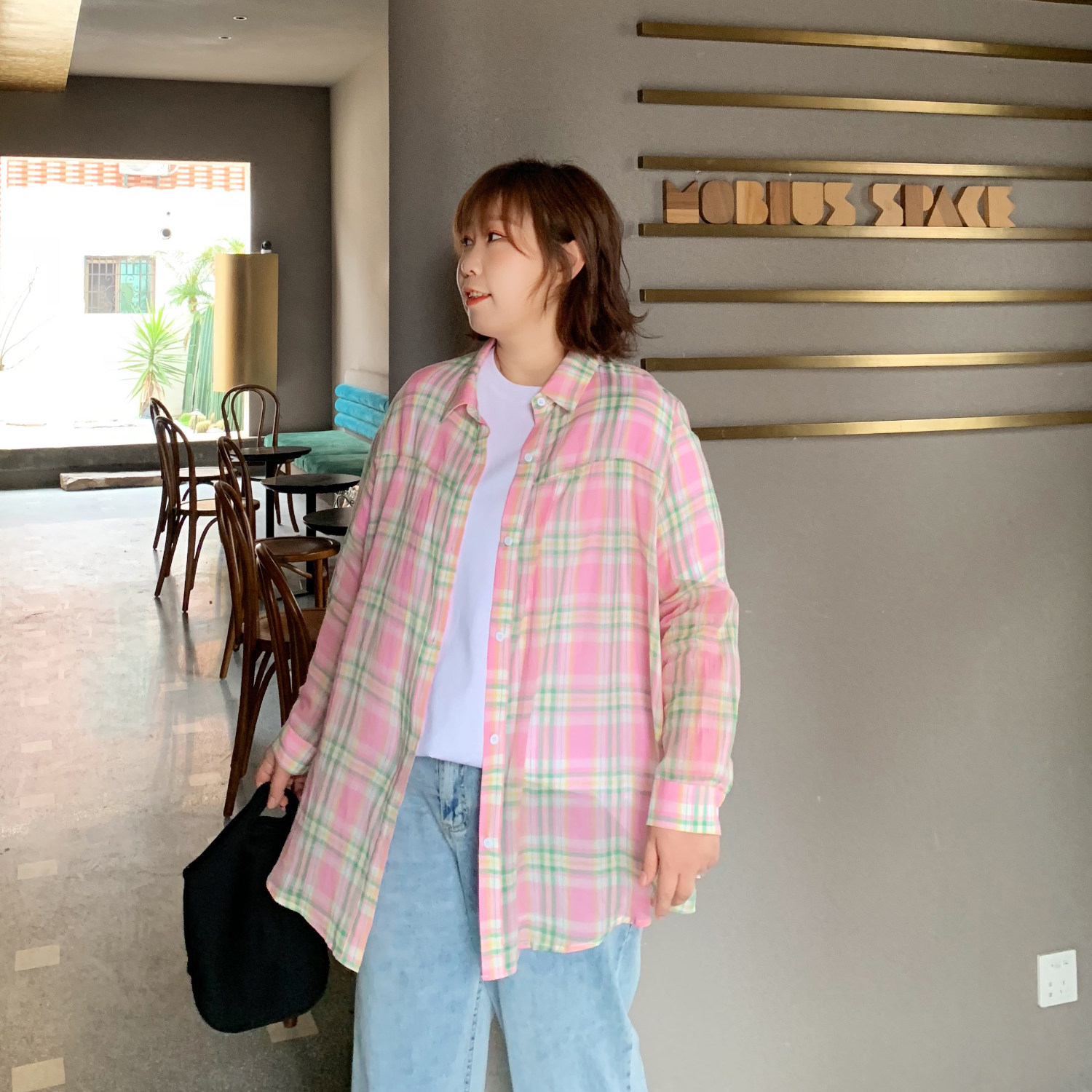 ALIN custom large size women's plaid shirt women's fat mm spring and autumn new loose outer wear all-match casual top