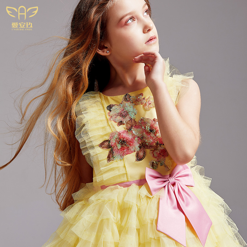 Love Anjiu Children Wedding Dress Princess Tug Tail Flowers Children's Birthday Dress Fluffy Dresses Walk Show Girl Flowers Fairies