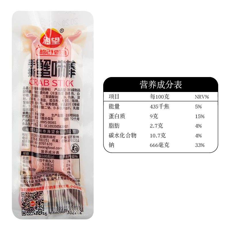 Haiwang hand-torn crab flavor stick 500g instant crab meat stick fish surimi crab willow crab meat stick crab steak seafood snack specialty