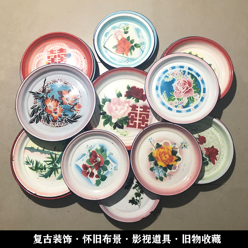 Old fashioned enamel tray 80 back nostalgic old objects swing pieces fruit plates Antiquity collection Decorative Props Old Tea Tray