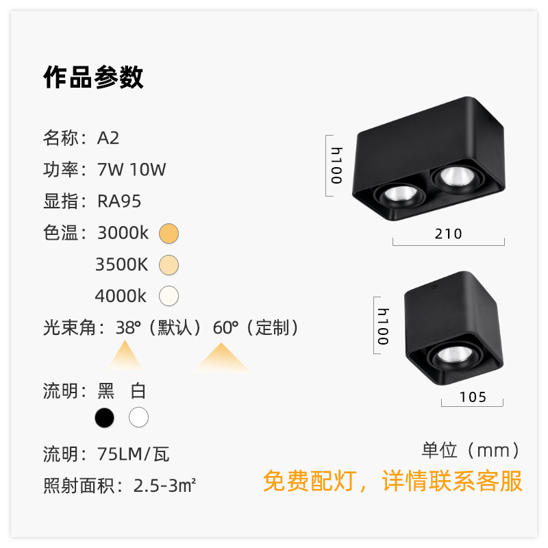 Single head black 10w 4000K double head black 2 * 10w 3500K double head black 2*7W 3000K double head black 2*1