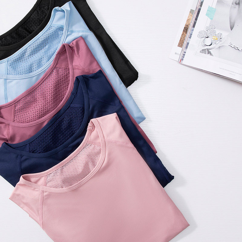 Large-code sports T - shirt female red sexy mesh - hole fitness suit speed running short - sleeve yoga tops thin